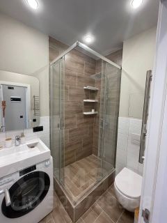 Апартаменты с современным ремонтом разделены на две изолированные студии по 15 кв.м. Каждая студия полностью укомплектована мебелью, техникой, всем необходимым для сдачи жилья.