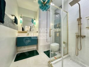 На кухне — посудомоечная машина, холодильник с морозилкой, варочная панель, кухонный гарнитур. В ванной — стиральная машинка. В гостиной есть ТВ. 2 кондиционера.