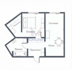 Из спальни вход в собственную гардеробную - мечта каждой девушки. Просторная кухня совмещена с залом. Кухонный гарнитур, встроенный холодильник.