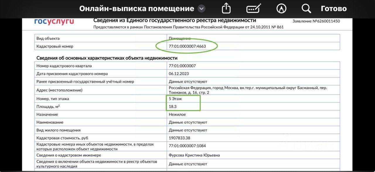 - Отдельный кадастровый номер