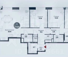 -Площадь 115.9 кв. м, потолки 3,3-3,4 м, что создаёт простор и ощущение свободы.
