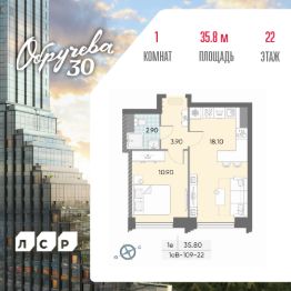 Продается 1-комн. кв-ра площадью 35.80 кв.м на 22 этаже 45 этажного монолитного дома в ЖК "ОБРУЧЕВА 30" от Группа ЛСР. "Обручева 30" - дом бизнес-класса в престижном районе ЮЗАО и шаговой доступности от станции метро "Калужская". Два корпуса неповторимой формы от бюро KAMEN Architects с уникальными форматами квартир: от двухуровневых с камином до квартир с террасой. "Клубная" инфраструктура для резидентов: студии йоги и сайкла, тренажерные залы, коворкинг-зона, конференц-залы, кинозал и детские игровые комнаты.