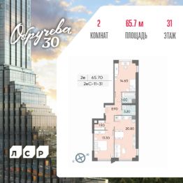 Продается 2-комн. кв-ра площадью 65.70 кв.м на 31 этаже 57 этажного монолитного дома в ЖК "ОБРУЧЕВА 30" от Группа ЛСР. "Обручева 30" - дом бизнес-класса в престижном районе ЮЗАО и шаговой доступности от станции метро "Калужская". Два корпуса неповторимой формы от бюро KAMEN Architects с уникальными форматами квартир: от двухуровневых с камином до квартир с террасой. "Клубная" инфраструктура для резидентов: студии йоги и сайкла, тренажерные залы, коворкинг-зона, конференц-залы, кинозал и детские игровые комнаты.