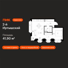 Продаётся 1-комн. квартира площадью 41,9 кв.м на 11 этаже 16 этажного дома (Корпус 1.4, Секция 4) проекта ПИК 2-й Иртышский. Светлый просторный подъезд на уровне земли, функциональная планировка, большие окна, c отделкой.
