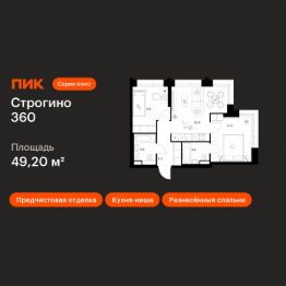 Продаётся 2-комн. квартира площадью 49,2 кв.м на 22 этаже 30 этажного дома (Доминанта 1.2, Секция 1) проекта ПИК Строгино 360. Светлый просторный подъезд на уровне земли, функциональная планировка, большие окна, предчистовая отделка.