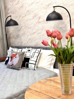 В квартире есть все необходимое для комфортного проживания: современная мебель и стильная техника, которые отлично дополняют дизайнерский ремонт. Удобная планировка позволяет рационально использовать пространство. Совмещенный санузел оборудован качественной сантехникой.