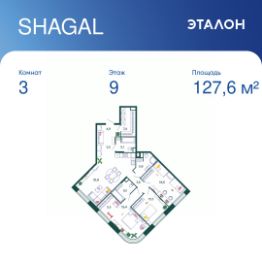 Общая площадь квартиры — 127.6 кв. м, этаж 9 из 27.