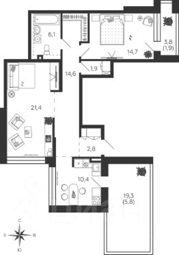 Продается 2-к квартира без отделки в ЖК "Shagal".