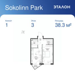 Общая площадь квартиры — 38.3 кв. м, этаж 3 из 12.