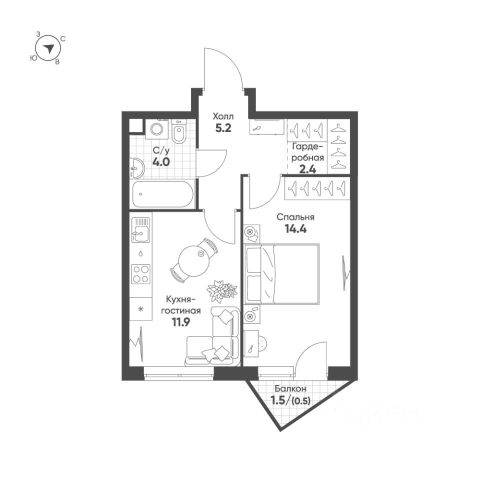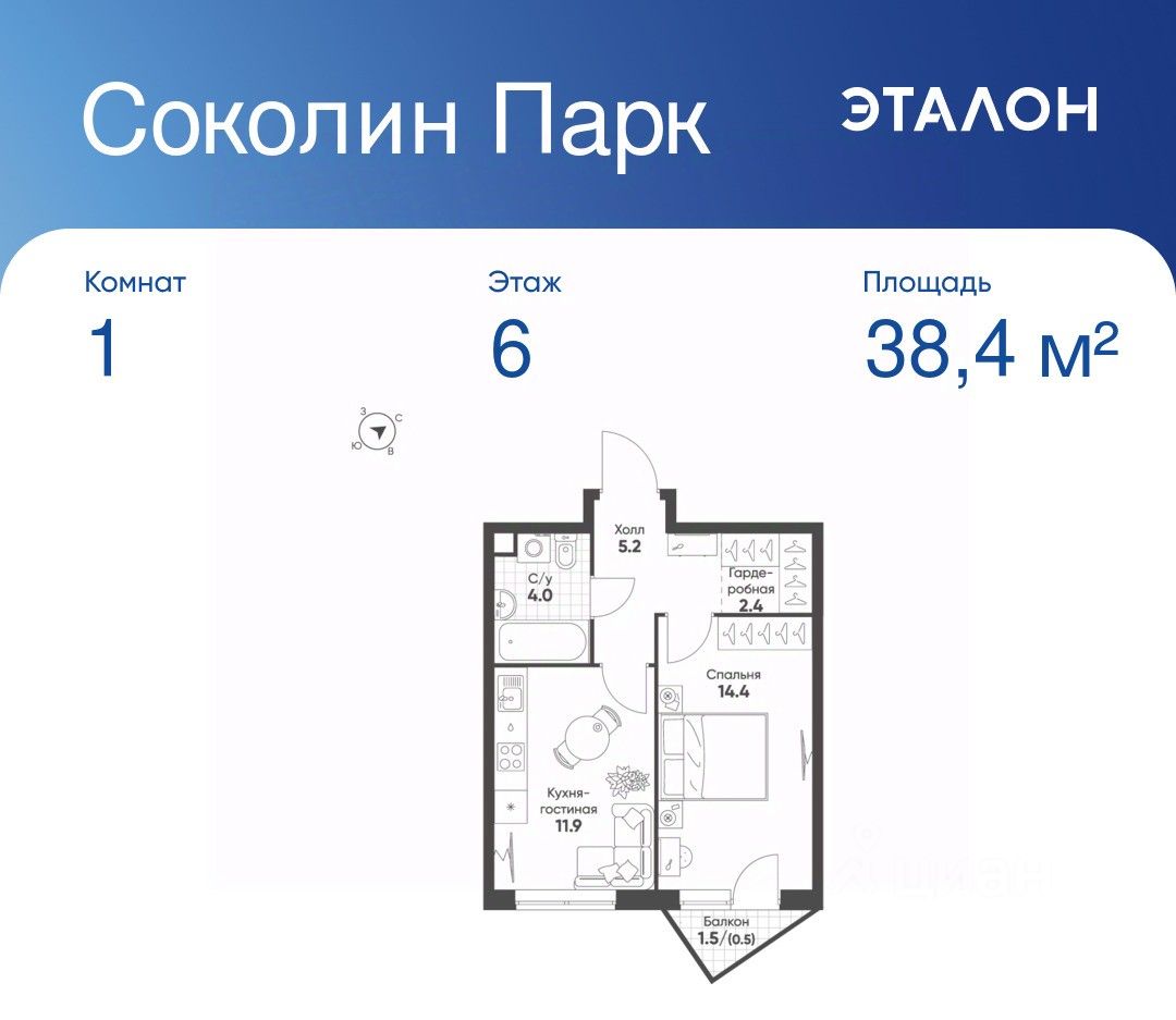 Продается 1-к квартира без отделки в ЖК "Соколин Парк".