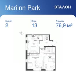 Общая площадь квартиры — 76.9 кв. м, этаж 13 из 16.