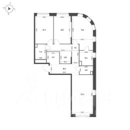Общая площадь квартиры — 107.7 кв. м, этаж 3 из 16.