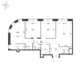 Общая площадь квартиры — 89.3 кв. м, этаж 14 из 16.