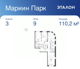 Общая площадь квартиры — 110.2 кв. м, этаж 9 из 16.