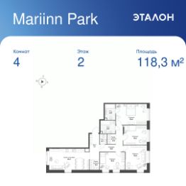 Общая площадь квартиры — 118.3 кв. м, этаж 2 из 4.