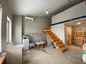 — площадь первого этажа 41,3 кв.м. высота потолков 4 метра, обустроен 2 этаж (высота потолка от 1,5 до 1.8 м), где можно организовать спальную комнату или рабочую зону площадью примерно 8 кв.м.;