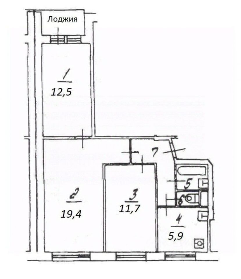 Просторная "трешка" с отличной распашонкой: общая площадь 58,1 м² (комнаты смежно-изолированные — большая детская 19,4 м², спальня 12,5 м², родительская с лоджией 11,7 м²; кухня 5,9 м²). Раздельный санузел, металлическая дверь, лоджия для отдыха. Окна в тихий зелёный двор — пейте чай у палисадника. Мебель остаётся, требует косметического ремонта (цена супервыгодная!). Много систем хранения, место даже для питомца — идеально для семьи с детьми.
