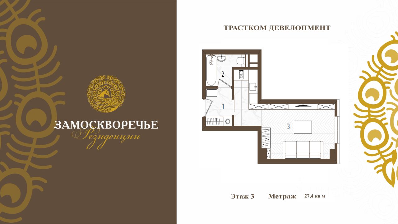 Квартира располагается на 3 этаже 14-этажного монолитного дома в ЖК Резиденции Замоскворечье 2022 года постройки. Застройщик - ООО "Трастком Девелопмент", высота потолков 3.0 м.