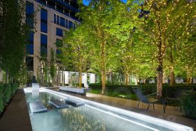 Внутренний двор с садом Клубного дома TURGENEV - оазис с зелеными газонами, мощеными тропинками, фонтанами, водными каналами, статуями и зонами для отдыха. Сад идеально вписан в пространство внутреннего двора.