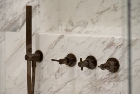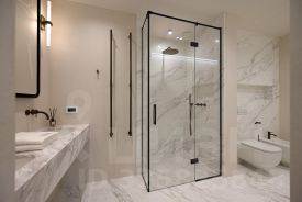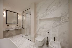 В каждой квартире установлены кухни от итальянского бренда Cesar со встроенной бытовой техникой премиальной линейки Smeg. Кухонный остров, столешница и фартук кухни выполнены из эксклюзивного итальянского мрамора Arabescato Grigio Orobico, одним из лучших видов мрамора на итальянском рынке натуральных отделочных камней.
