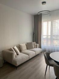 Предлагаем купить 3 х комнатную квартиру(евротрешка) в новом жилом комплексе бизнес-класса Вестердам. Преимущество квартиры, что она расположена в малоэтажной секции комплекса на 3 этаже 9 этажного дома.Функциональное планировочное решение включает в себя: кухню-гостиную, две спальни, два санузла, зоны хранения. Квартира продается с отделкой : комбинирование современных материалов, применение теплых и нейтральных оттенков, ламинат и керамогранит дополняют окрашенные стены и натяжные потолки. В квартире остается вся мебель и встроенная техника.