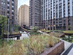 В ЖК Вереск большой и комфортный внутренний благоустроенный двор-парк с ландшафтным дизайном с редкими растениями, клумбы и элементы декора из дорогой оригинальной кортеновской "вечной" стали , подземный паркинг, дизайнерская отделка фасада, современные входные группы и бесшумные надёжные лифты Otis, крыша эксплуатируемая, на ней оборудованы беседки для отдыха. В самом комплексе уже есть самая необходимая инфраструктура - ПВЗ, салон красоты, минимаркет, уютный семейный ресторан. Детская площадка снаружи дома, рядом с лесом, но огорожена с доступом по ключу. А по соседству в ЖК Хорошевский современная школа One! International School и много других необходимых объектов для комфортной жизни.