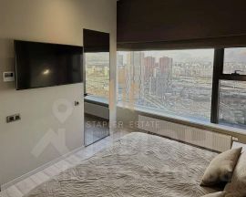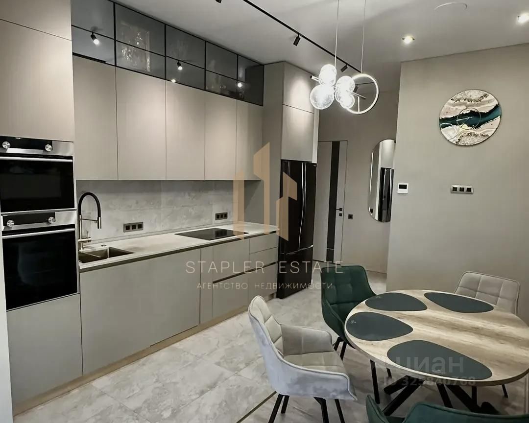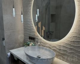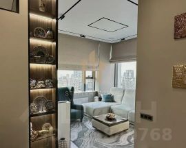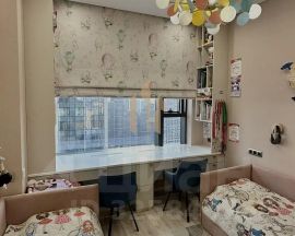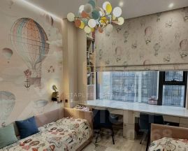 В квартире выполнен дизайнерский ремонт, а функциональная планировка включает в себя просторную кухню-гостиную, мастер-спальню, детскую, кабинет, постирочную и гардеробные. Из панорамных окон открываются захватывающие виды на город.