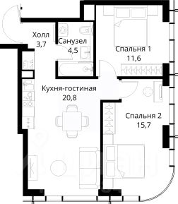 Продаётся 2-комнатная квартира общей площадью 56.30 м² без отделки в ЖК Сити Бэй, квартале Пасифик, на 45-м этаже 59 этажного дома.
