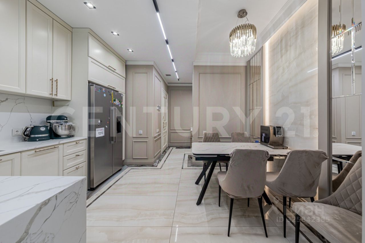 Квартира полностью готова к проживанию. В гостиной и на кухне использованы лучшие материалы и мебель, создающие пространство для отдыха и уюта. Окна выходят на тихий закрытый двор и открывают шикарный панорамный вид на аллею и ресторан Паризьен — идеальное место для Вашего отдыха.