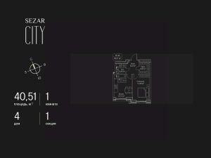 Продается 1-комнатная квартира в ЖК SEZAR CITY на 6 этаже. Общая площадь квартиры составляет 40,51 кв.м. Квартира без отделки. Срок сдачи - 2027 год.