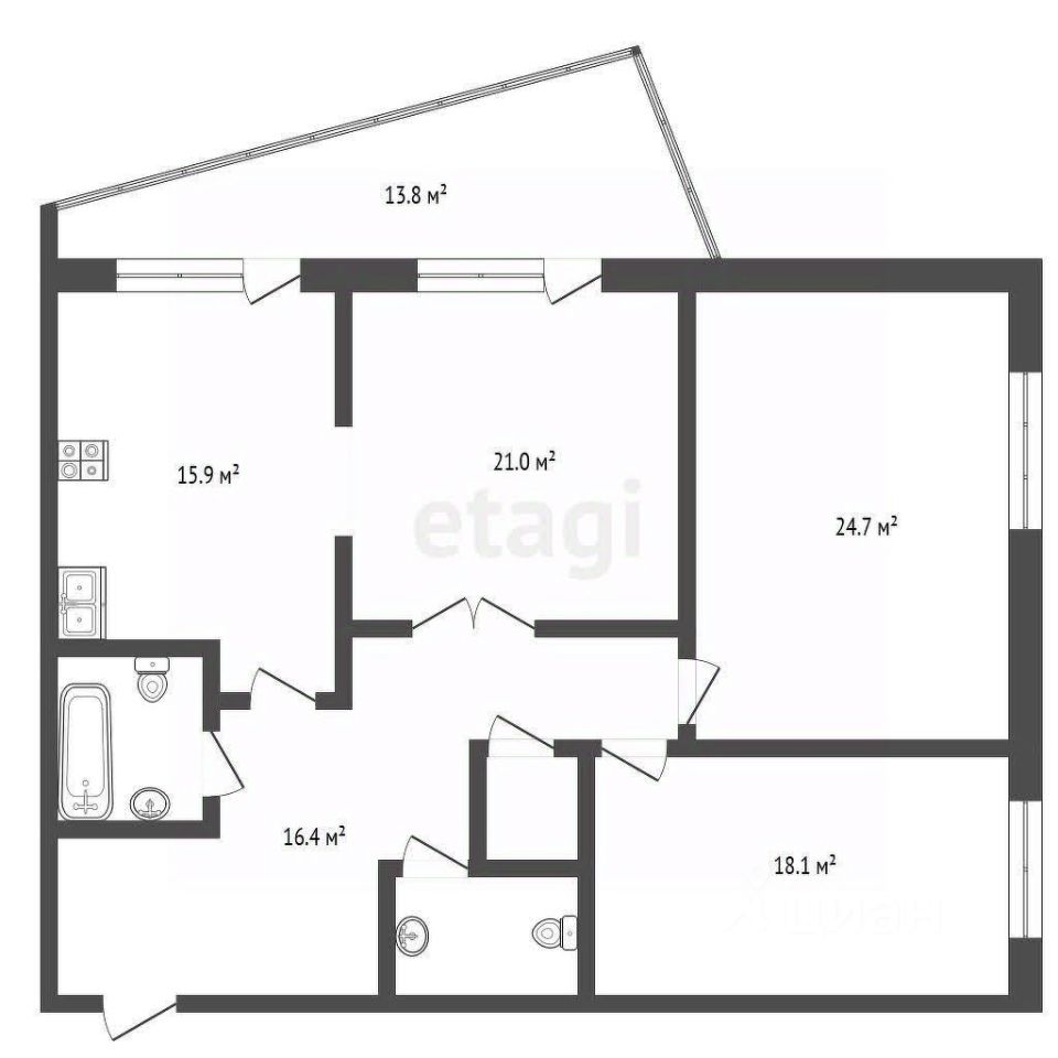 Трехкомнатная квартира общей площадью 104,0 кв.м. Квартира имеет свободную планировку (большая часть стен в периметре не несущие), высокие потолки (3,00м).
