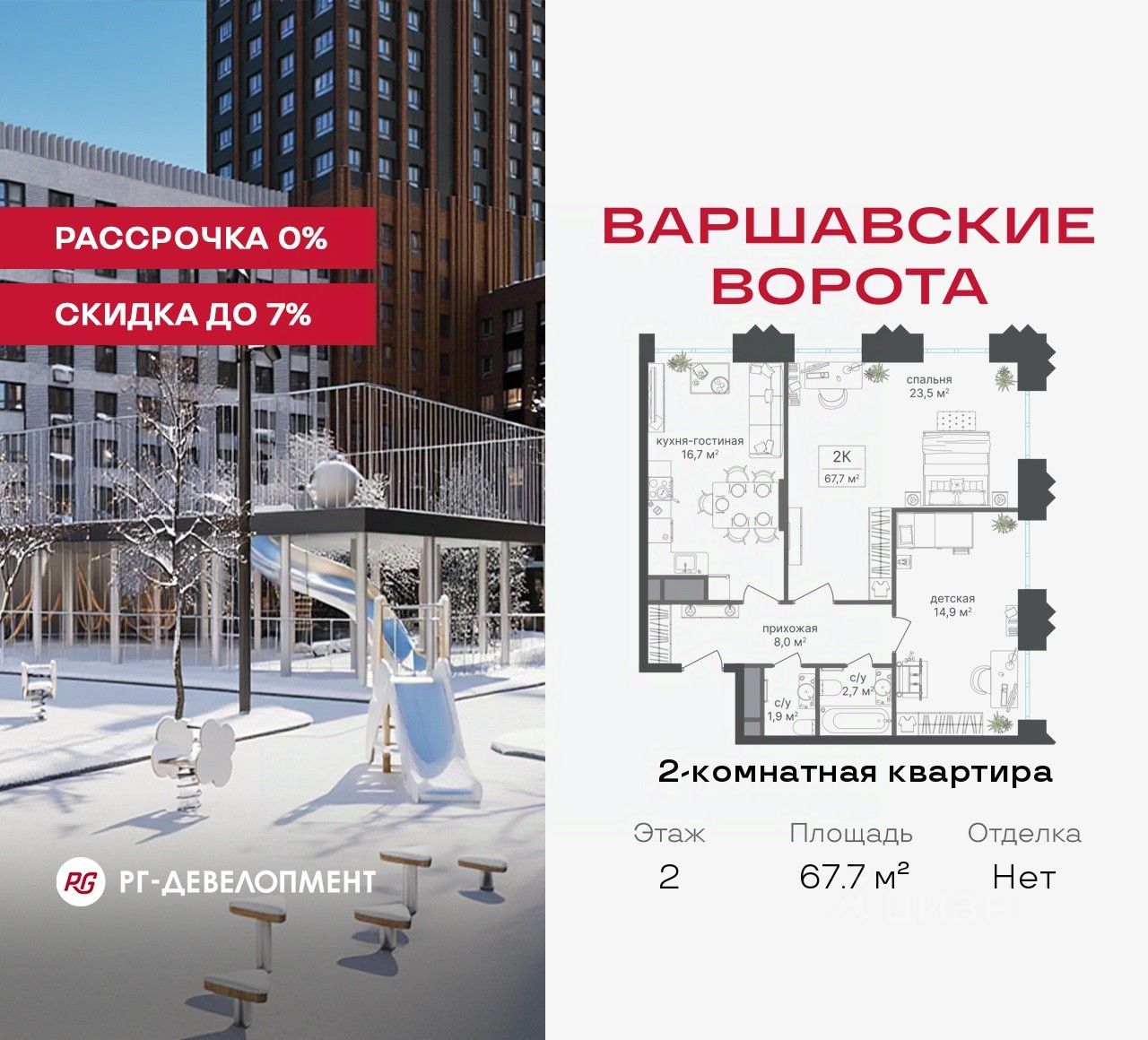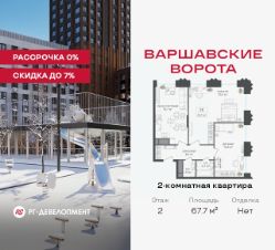 Продаётся 2-комнатная квартира 67.7 кв.м. в МФК "Варшавские ворота" на 2-м этаже 30 этажного дома. МФК "Варшавские ворота" — это точка баланса между природой и городом, стилем и функциональностью, жизнью сегодня и устойчивым будущим.