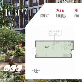 Продается квартира студия площадью 28.80 кв.м на 20 этаже 23 этажного монолитного дома в ЖК "ПАРКСАЙД" от Группа ЛСР. "Парксайд" это гармония природы и города. Жилой комплекс бизнес-класса строится в районе Чертаново Центральное Южного административного округа Москвы. В непосредственной близости от Битцевского леса, одного из крупнейших лесных массивов Москвы.