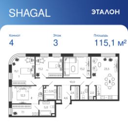 Общая площадь квартиры — 115.1 кв. м, этаж 3 из 7.