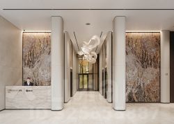 Лобби проекта наполнено светом и спокойствием - здесь хочется ненадолго задержаться, перевести дыхание. Мягкое освещение создают авторские светильники: они подчеркивают архитектуру пространства и не утомляют глаз. Акцентный элемент - мозаичное панно с растительным мотивом, выполненное из керамических пластин, которое придает интерьеру изысканность и художественную выразительность."