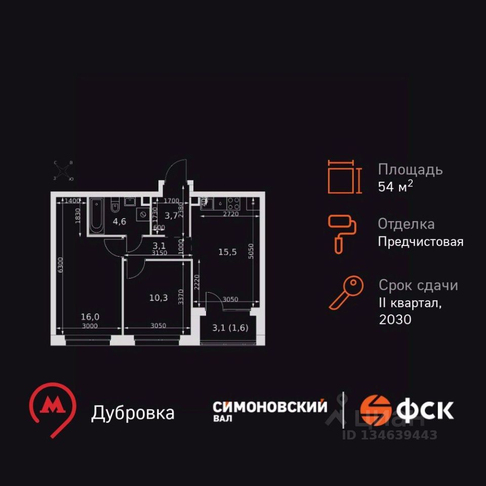 Продаётся 3-к квартира номер 89 общей площадью 54.8 кв.м. на 9-м этаже 27 этажного здания. Отделка Whitebox.