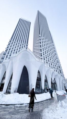 Современный жилой комплекс бизнес классбизнес-класса 2022 года постройки. Комплекс спроектирован на собственном стилобате, включает три корпуса высотой от 48 до 58 этажей. Современная архитектура, стильная входная группа с лобби, зона с камином и картинами.