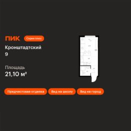 Продаётся квартира-студия площадью 21,1 кв.м на 12 этаже 12 этажного дома (Корпус 1.1.2, Секция 2) проекта ПИК Кронштадтский 9. Светлый просторный подъезд на уровне земли, функциональная планировка, большие окна, предчистовая отделка.