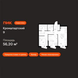Продаётся 2-комн. квартира площадью 56,2 кв.м на 31 этаже 32 этажного дома (Корпус 1.1.3, Секция 3) проекта ПИК Кронштадтский 9. Светлый просторный подъезд на уровне земли, функциональная планировка, большие окна, предчистовая отделка.