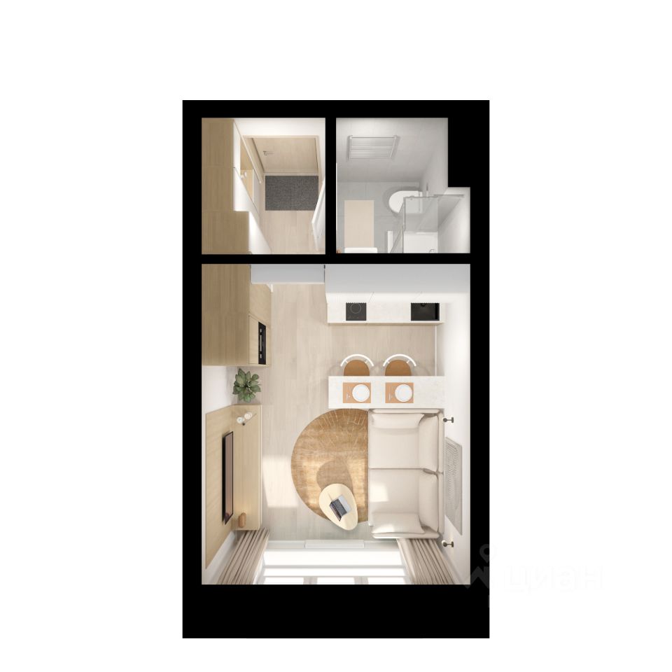 Продаётся квартира-студия площадью 19,4 кв.м на 12 этаже 14 этажного дома (Корпус 1.6, Секция 3) проекта ПИК Полар. Светлый просторный подъезд на уровне земли, функциональная планировка, большие окна, c отделкой.