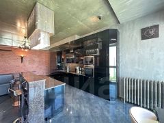 Квартира четко разделена на гостевую зону с барной стойкой, обеденным пространством и отдельным кабинетом-студией. А в приватной, домашней части разместились 3 спальни и 2 ванные комнаты.