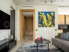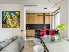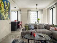 Дизайн: Жилое пространство выдержано в светлой, визуально расширяющей метраж цветовой гамме, которая эффектно оттенена яркими элементами декора. Панорамные окна обеспечивают прекрасную инсоляцию и видовые характеристики.