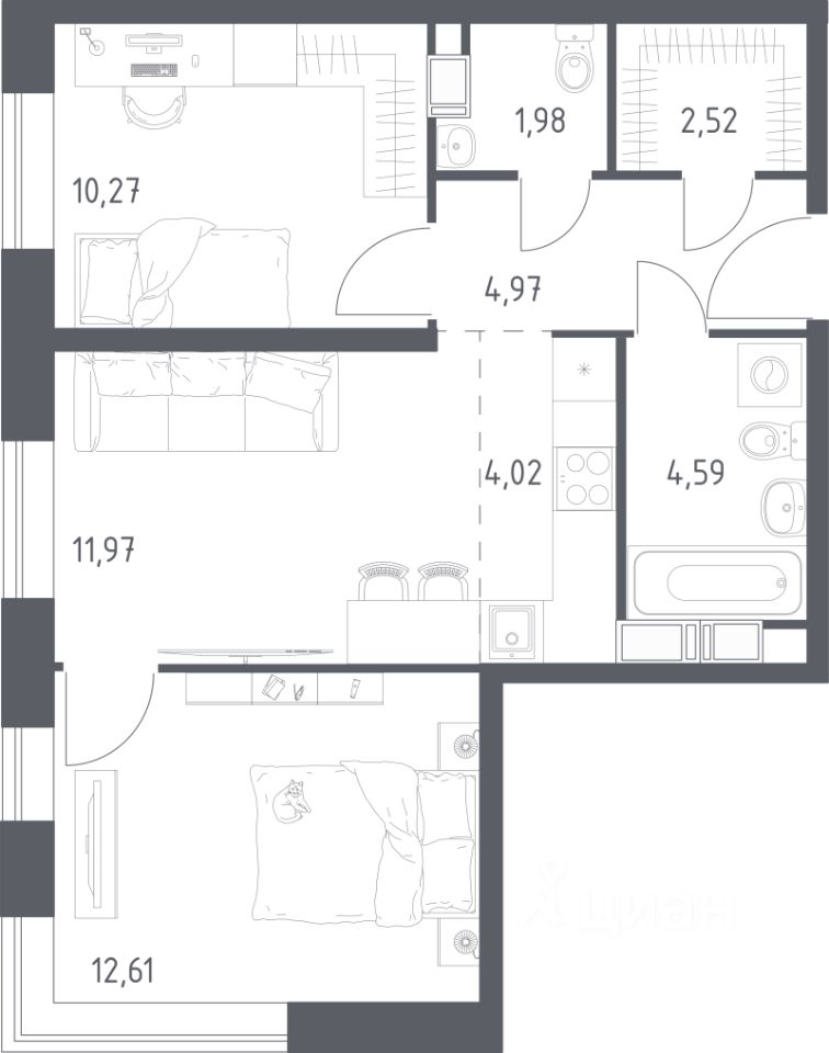 Продаётся 2-комнатная квартира в строящемся доме (Корпус 12), срок сдачи: II-кв. 2026, общей площадью 52.93 кв.м., на 7 этаже. ЖК "Цветочные поляны" - это современный формат жизни, выраженный в архитектуре. Вы получаете возможность жить в стильном малоэтажном микрорайоне, в окружении чистой природы, с продуманной инфраструктурой, благоустроенными дворами-парками и удобным расположением. Микрорайон состоит из 14 монолитных домов созданных по индивидуальному дизайну в лаконичном европейском стиле по 8 и 9 этажей. Жилые корпуса образуют комфортные дворы-парки, с круглосуточным видеонаблюдением и развитой инфраструктурой. Детские сады, школа, магазины - все необходимые объекты здесь расположено в нескольких шагах от дома.