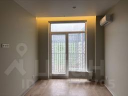 Входная дверь с зеркалом, ламинат 32 класса, натяжные потолки, обои в сдержанных тонах, межкомнатные двери, розетки, выключатели, точечные светильники, установлен кондиционер;