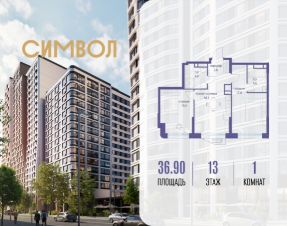 Продается 1-комнатная квартира от застройщика: общая площадь 36.90 м², жилая 16.00 м², кухня 14.70 м², 13-й этаж, жилой квартал "Гордость", корпус 40 (секция 1). Срок сдачи: 2 квартал 2029 года.