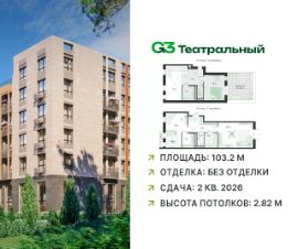 В современном квартале бизнес-класса G3 Театральный продаётся 3-комнатная квартира, общей площадью 103.2 кв.м, расположенная на 5 этаже (корпус 2, секция 5).