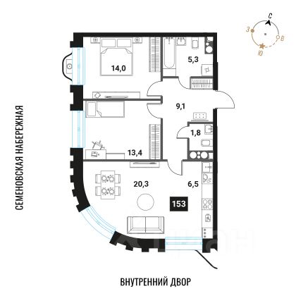 Продаётся 3-комнатная квартира, общей площадью 70.40 кв.м , на 15 этаже. Жилой комплекс Интеллигент располагается на Семеновской набережной, вл. 3, стр. 13А в городе Москва.