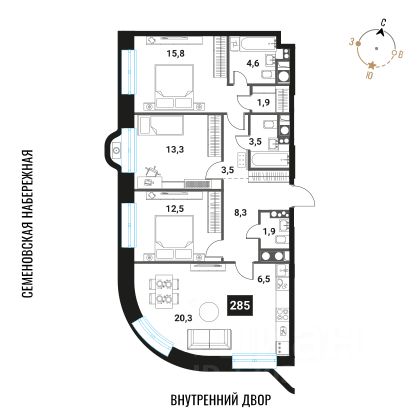 Продаётся 4-комнатная квартира, общей площадью 92.10 кв.м , на 27 этаже. Жилой комплекс Интеллигент располагается на Семеновской набережной, вл. 3, стр. 13А в городе Москва.