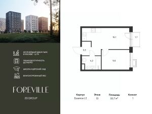 Предчистовая отделка в подарок! Пешая доступность от метро и московская прописка! Продается уютная 1-комн. квартира площадью 33,7 кв.м на 13 этаже 17 этажного жилого комплекса бизнес-класса Foreville от 3S Group.