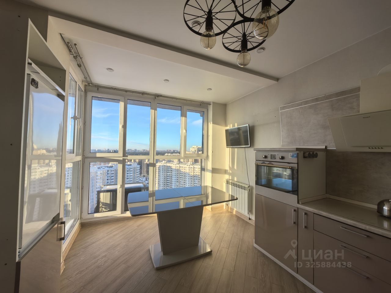 Квартира расположена на 22 этаже, прекрасный вид из окон на закат и самолеты. Благодаря перепланировке кухня-гостиная 16м2 - просторная, подходит для семейных ужинов.